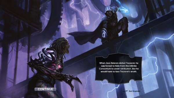Ecco dunque, in apertura, fare la conoscenza di un certo Gideon Jura, un Planeswalker, un “Viandante dei piani materiali”, un personaggio dai poteri straordinari che – analogamente ad altri pochi eletti – riesce a viaggiare nello spazio e ad agire in mondi molto distanti tra loro. Magic The Gathering, infatti, è un universo di magia e intrecci fantasy, degni del miglior “Signore degli Anelli” oppure “Shannara”.