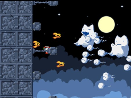 Quote è il classico personaggio provvidenziale che, grazie alle sue capacità speciali, è l’unico che può opporsi al Dottore e ai suoi sgherri per salvare il destino delle terre dei Mimiga. Lungi da noi mostrarvi altro dell’interessante trama, qui basti sapere che per essere un gioco scritto da una sola persona, non ha nulla da invidiare alle produzioni più blasonate sul fronte dell’intreccio narrativo e dei colpi di scena.