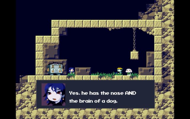 Quote è il classico personaggio provvidenziale che, grazie alle sue capacità speciali, è l’unico che può opporsi al Dottore e ai suoi sgherri per salvare il destino delle terre dei Mimiga. Lungi da noi mostrarvi altro dell’interessante trama, qui basti sapere che per essere un gioco scritto da una sola persona, non ha nulla da invidiare alle produzioni più blasonate sul fronte dell’intreccio narrativo e dei colpi di scena.
