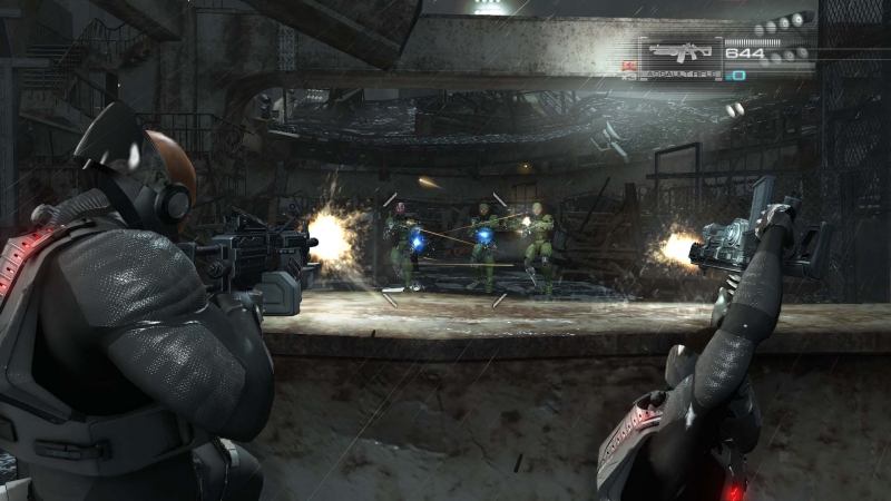 Il sistema di coperture funziona egregiamente così come quello dei controlli, in generale che, durante il corso del gioco, divengono sempre più intuitivi e reattivi. La presenza di punti di potenziamento delle armi concorre a migliorare il “feeling” con l’equipaggiamento e il requisito per potersi permettere l’upgrade dei fucili è, semplicemente, quello di affrontare i nemici nel migliore dei modi. Privandoli di braccia e gambe, infatti, non solo otteniamo più crediti da investire nelle armi, ma anche vantaggi immediati sul campo. Se si è abbastanza abili nel privarli di testa, gli automi ci volgono le spalle e prendono a sparare agli altri robot, non potendo più distinguere gli amici dai nemici.