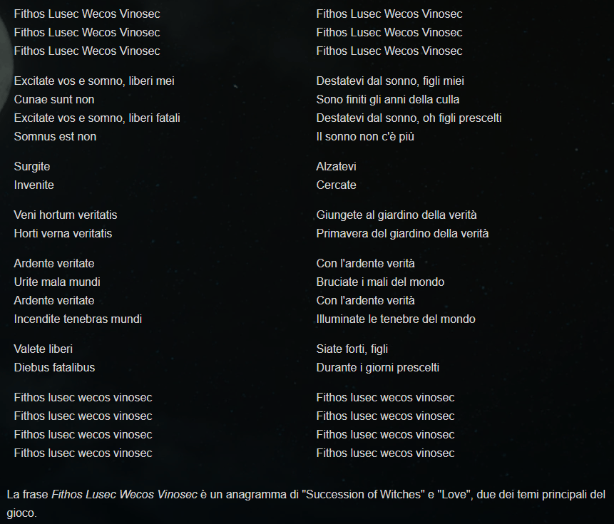 La musica accompagna le immagini dell’introduzione di Final Fantasy VIII ed è caratterizzata da un coro che recita un testo in latino, ben poco classico e pieno di licenze poetiche e metriche. Il risultato, in ogni caso, è assolutamente spettacolare. Oltre al consueto video troverete il testo e la rispettiva traduzione, tratti direttamente dalla wiki italiana di Final Fantasy VIII.