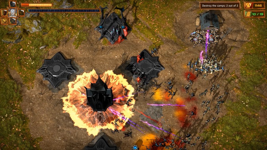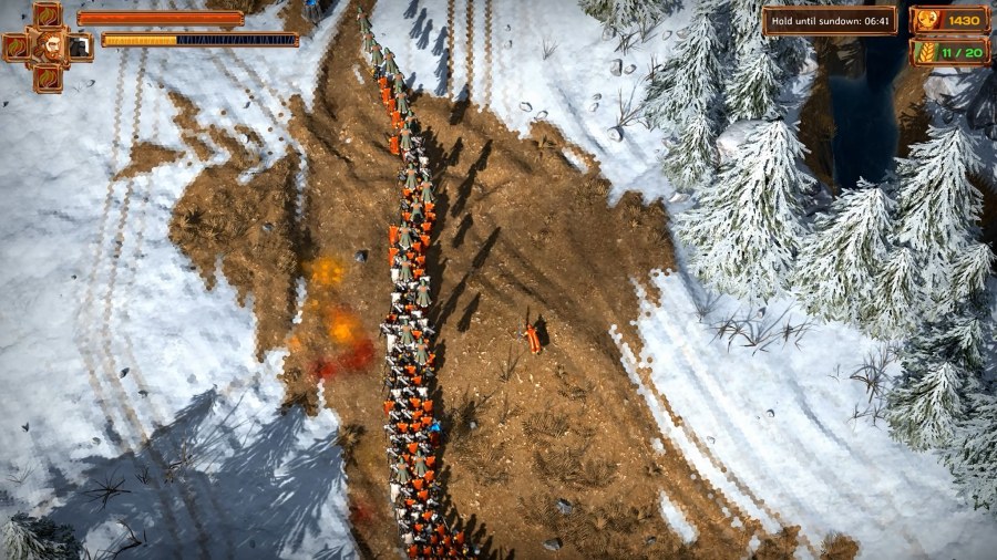 Lornsword: Winter Chronicles ci mette nei panni di un generale dell’esercito dell’impero, ci muoviamo nelle ambientazioni da un punto di vista elevato, come nella migliore tradizione hack’n’slash e possiamo scegliere se affettare i nemici con la nostra fida spada oppure evocare potenti alleati tramite delle magie. Queste ultime richiedono uno sforzo in termini di energia magica, che va recuperata nei pressi di precisi altari. Non di meno possiamo ordinare l’edificazione di qualche edificio che possa addestrare, all’occorrenza, il tipo di milizia che occorre (da mischia, da distanza). Le risorse a nostra disposizione (legno, cibo e oro) tuttavia sono sempre poche e dobbiamo farcele bastare.