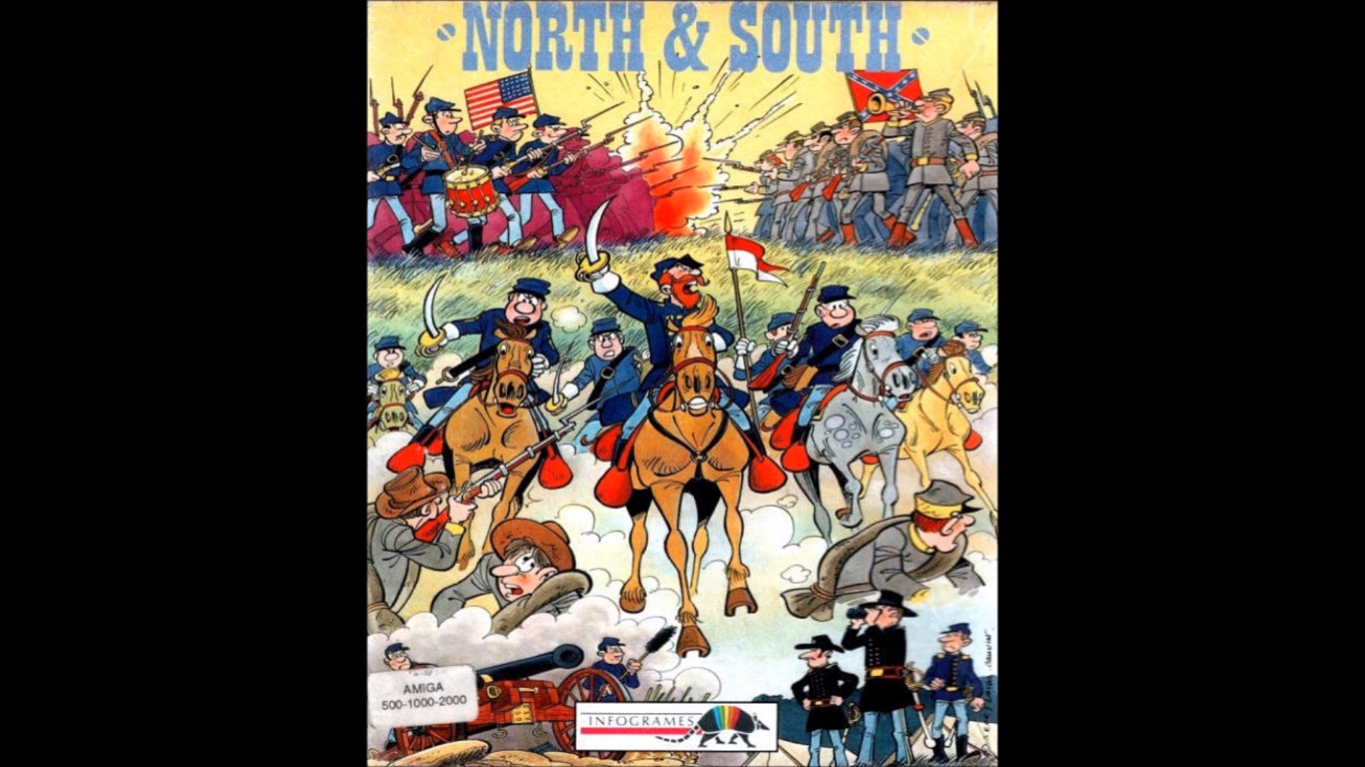North vs South è un gioco griffato Infogrames e le sue splendide musiche sono firmate dal mitico Jeroen Tel per la versione C64 e dal talentuoso Charles Callet per Amiga. Essendo giocatore su quest’ultima piattaforma, non ho potuto fare a meno di apprezzare il lavoro di questo compositore che – apprendo solo ora – era affetto da osteogenesi imperfetta, una brutta e rara malattia delle ossa che non gli ha impedito di esprimere il suo talento in decine di videogiochi: annovero solo la serie Goblins e Hostage.