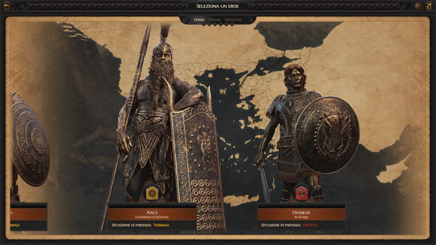 Esattamente come per gli altri personaggi, troviamo missioni di fazione e meccaniche inedite. Aiace, similmente ad Achille, sfida i nemici per dimostrarsi il più valoroso condottiero ellenico. Diomede, invece, accede a vantaggi diplomatici unici che possono ribaltare gli equilibri politici di intere regioni.