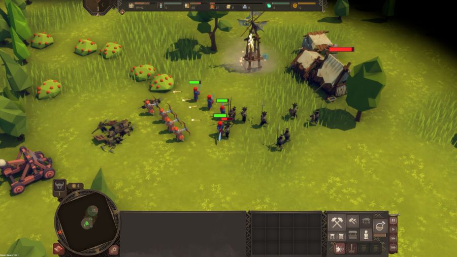Come ogni strategico in tempo reale che si rispetti, dobbiamo agire velocemente. Sulle prime battute bisogna procacciare le risorse primarie: cibo e legno. Poi occorre dedicarsi alla raccolta delle risorse secondarie: pietra e ferro, che permettono di arrivare a tecnologie e difese più efficaci, quali armature metalliche, armi migliori, fortificazioni in pietra.